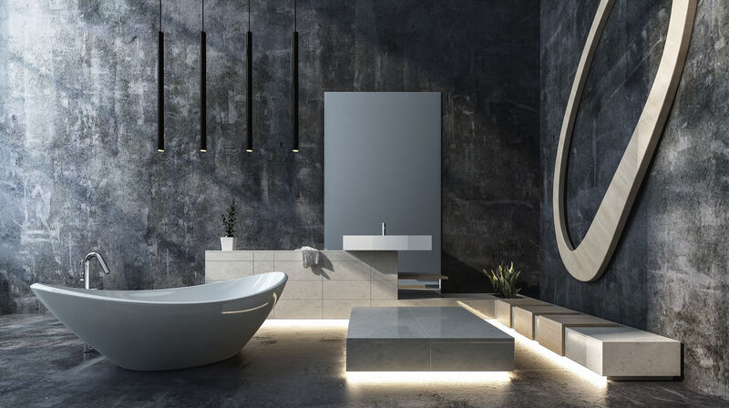 - Freistehende Badewanne mit schwarzem Gestell